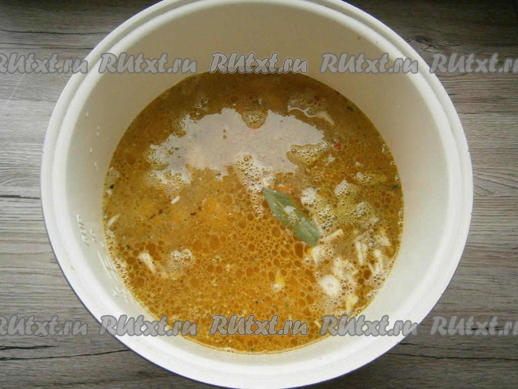 Готовому супу дать немного настояться (минут 15) после сигнала под закрытой крышкой мультиварки.