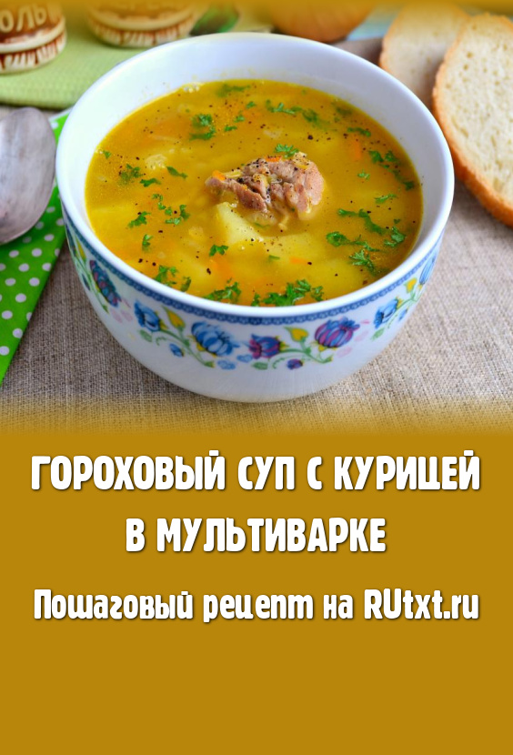 Гороховый суп с курицей, приготовленный в мультиварке, получается намного вкуснее и насыщеннее, сваренного на плите. Да и готовится проще - не нужно предварительно замачивать горох, не нужно следить, чтобы не сбежала пена. Суп получается отличным! Вместо обычной курицы можете использовать копченую, вкус блюда получится ещё более ароматным.