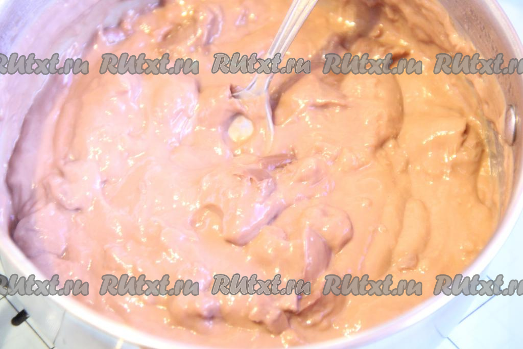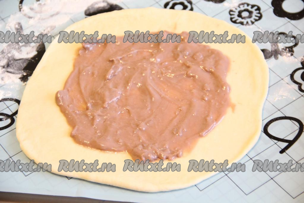Смазать тесто пудингом.