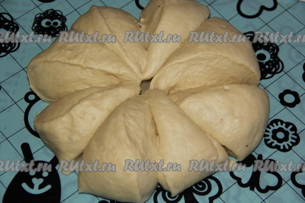 Готовое тесто обмять и разделить на 8-10 частей.