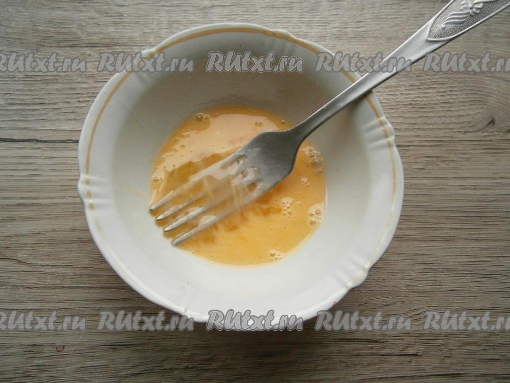 В отдельной тарелке взбить вилкой яйцо со щепоткой соли.