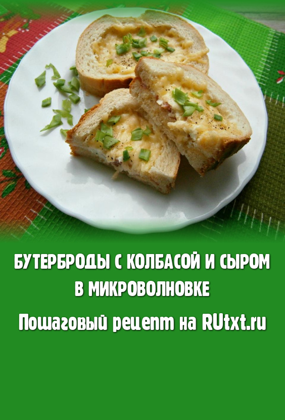 Подать вкусные и сытные бутерброды с колбасой и сыром, приготовленные в микроволновке, к столу горячими, посыпав измельченным зеленым луком и небольшим количеством чёрного молотого перца.