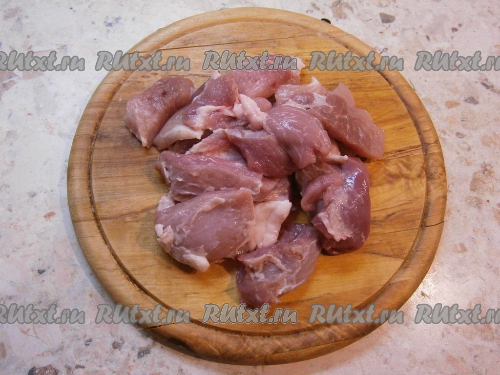 Свинину вымыть, обсушить и нарезать на кусочки довольно крупного размера.