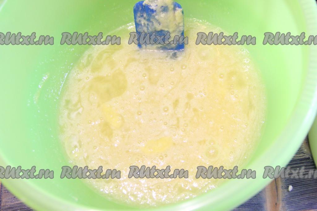 Затем добавить растопленное не горячее сливочное масло и хорошо перемешать.