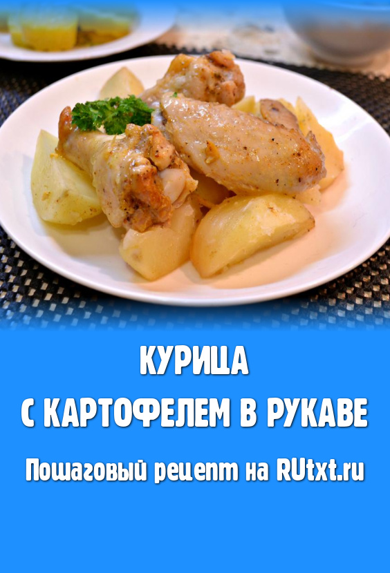 Отправить рукав в разогретую до 180 градусов духовку на 1 час. Если хотите, чтобы картофель с курицей зарумянились, за 15 минут до окончания приготовления разрежьте сверху рукав.