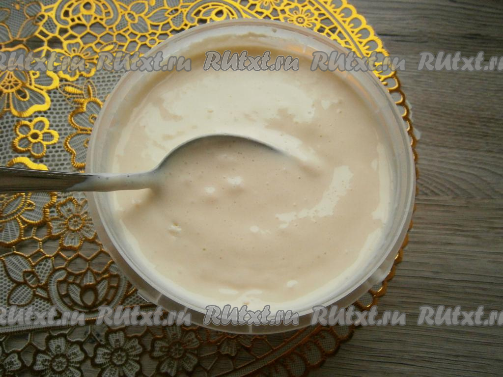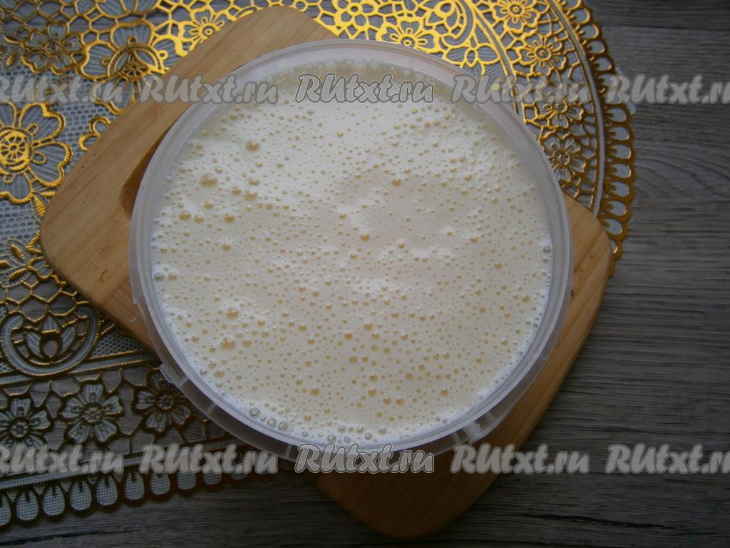 Поместить контейнер в морозилку на 6-8 часов. Каждые 1,5 часа сливочную смесь нужно хорошо перемешивать.