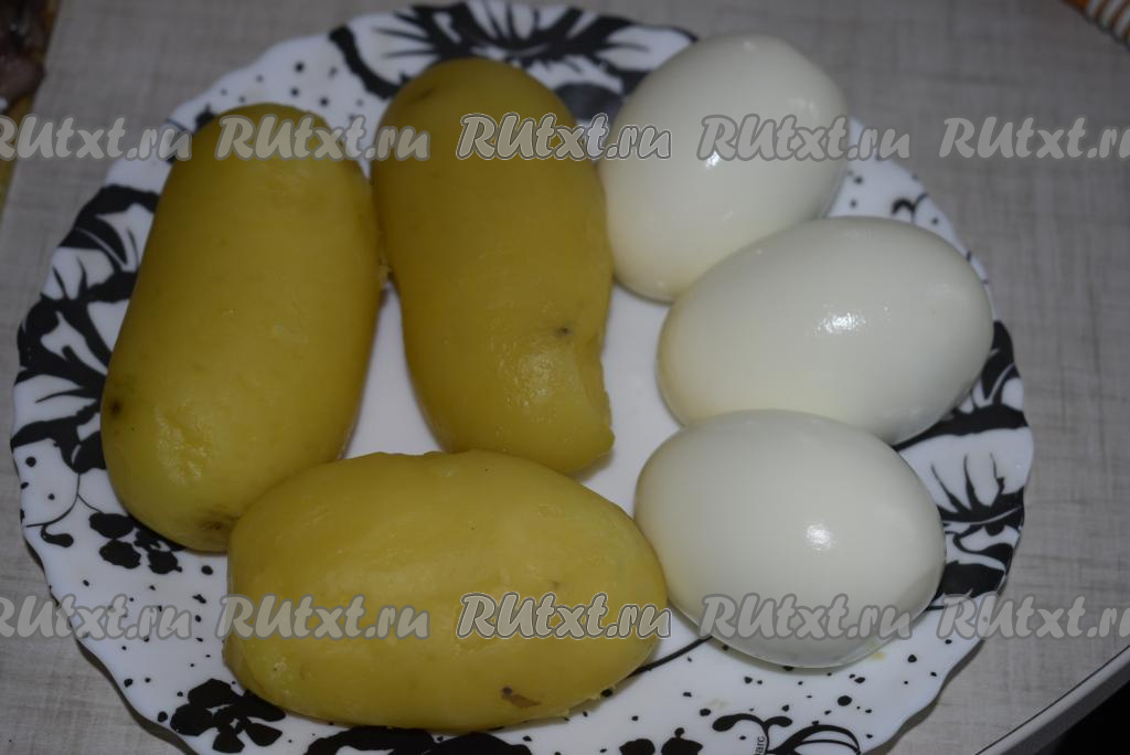 Отвариваем яйца и картофель в кожуре до готовности. Готовый картофель должен легко прокалываться ножом или вилкой.