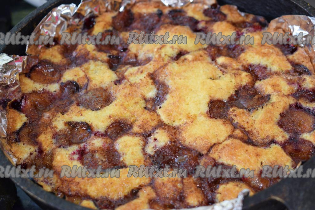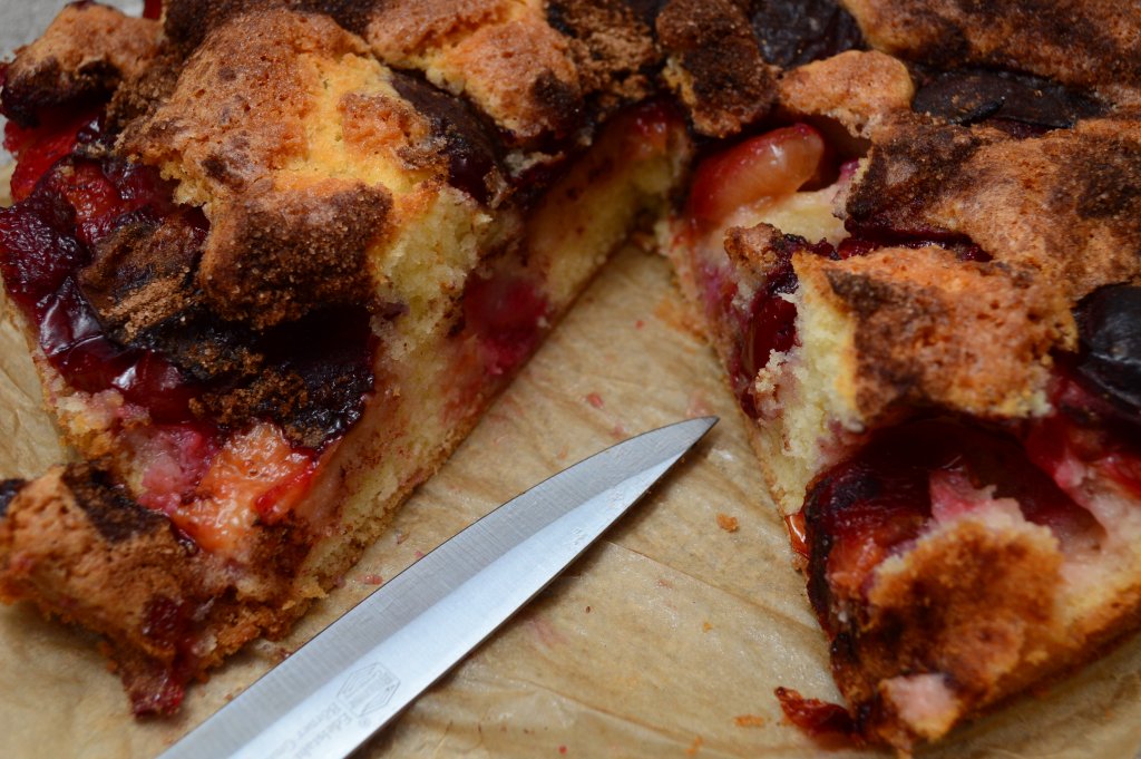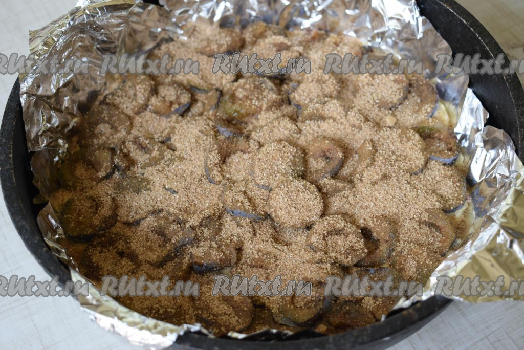Посыпать этой смесью подготовленный сливовый пирог.