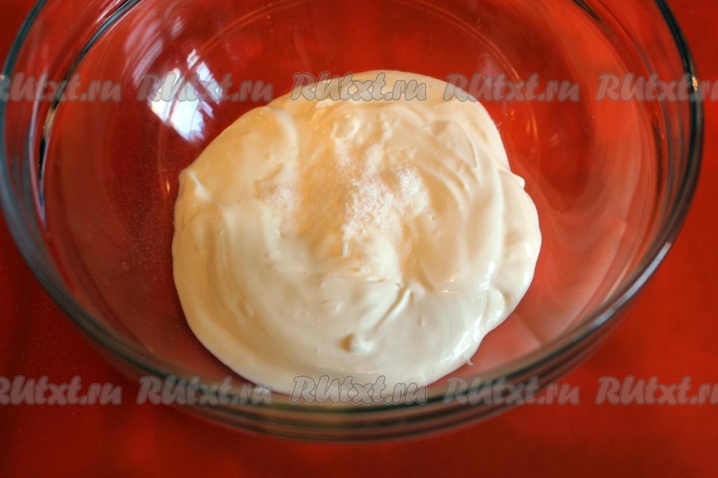 Для приготовления теста добавьте соду в сметану и размешайте.