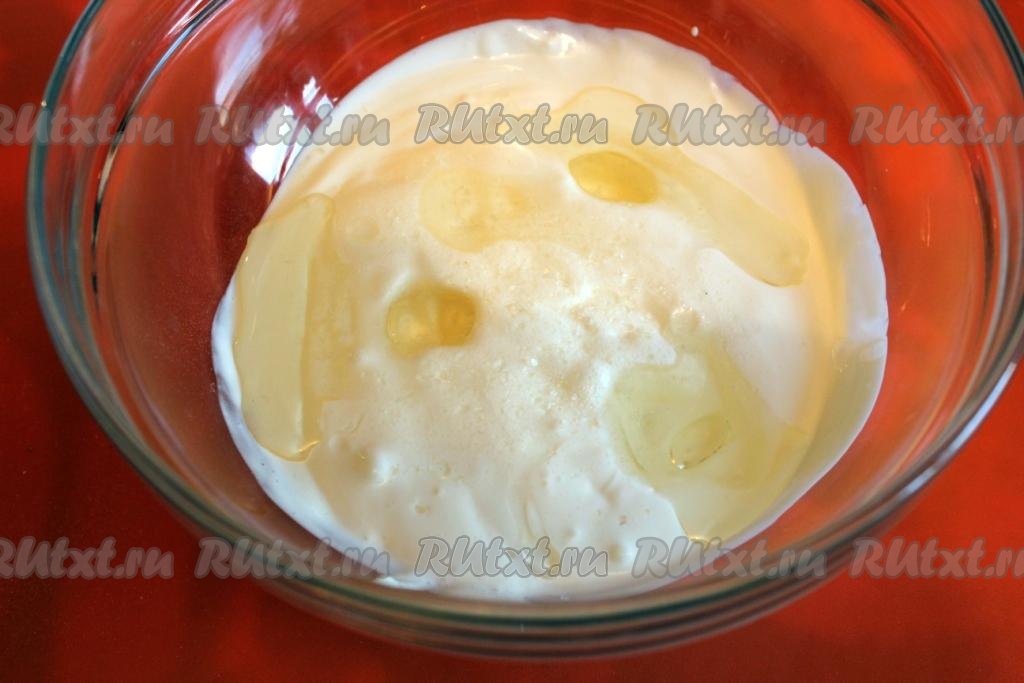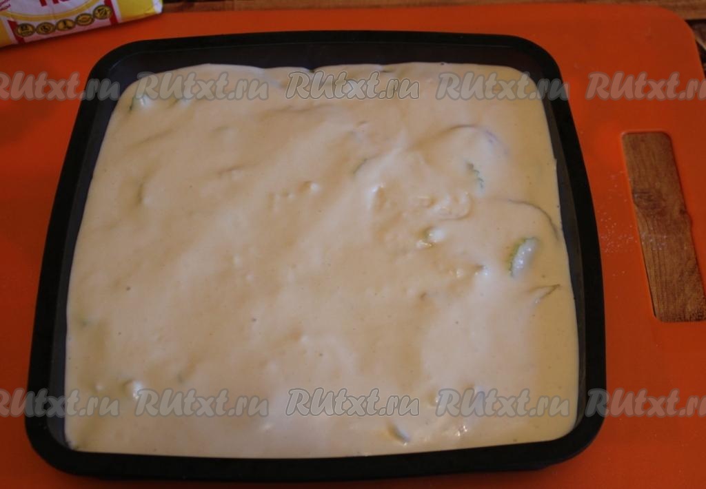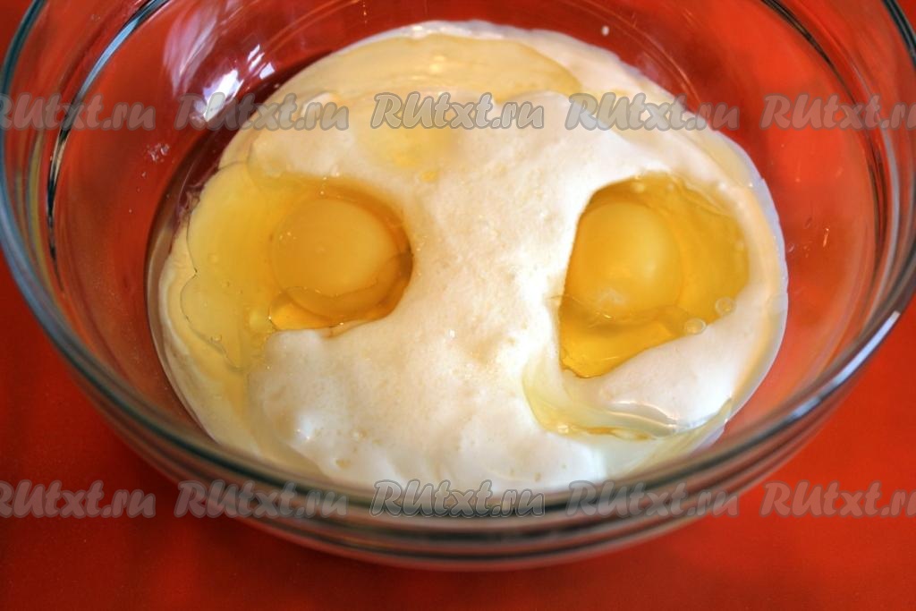Всыпьте муку и ещё раз перемешайте до образования жидкого, пышного теста по консистенции, как на оладьи.