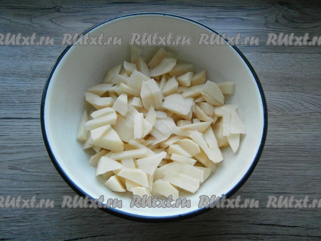 Картофель очистить и нарезать на небольшие ломтики.