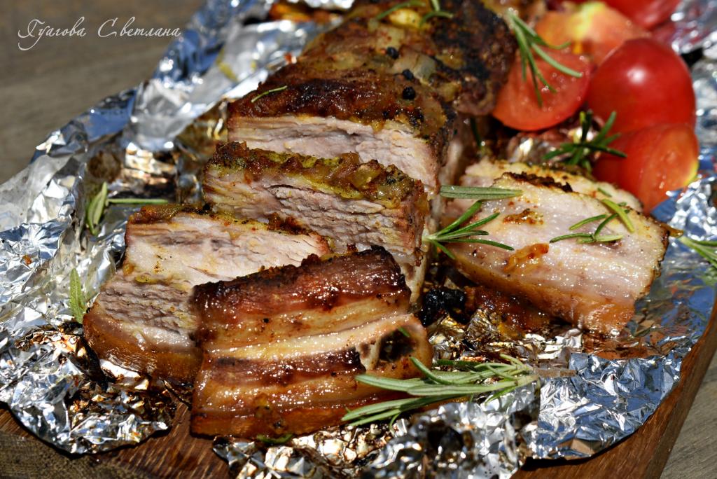 Свиная грудинка, запеченная в фольге в духовке