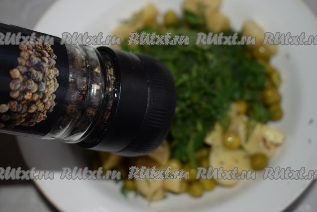 Заправляем салат маслом и свежемолотым перцем, перемешиваем.