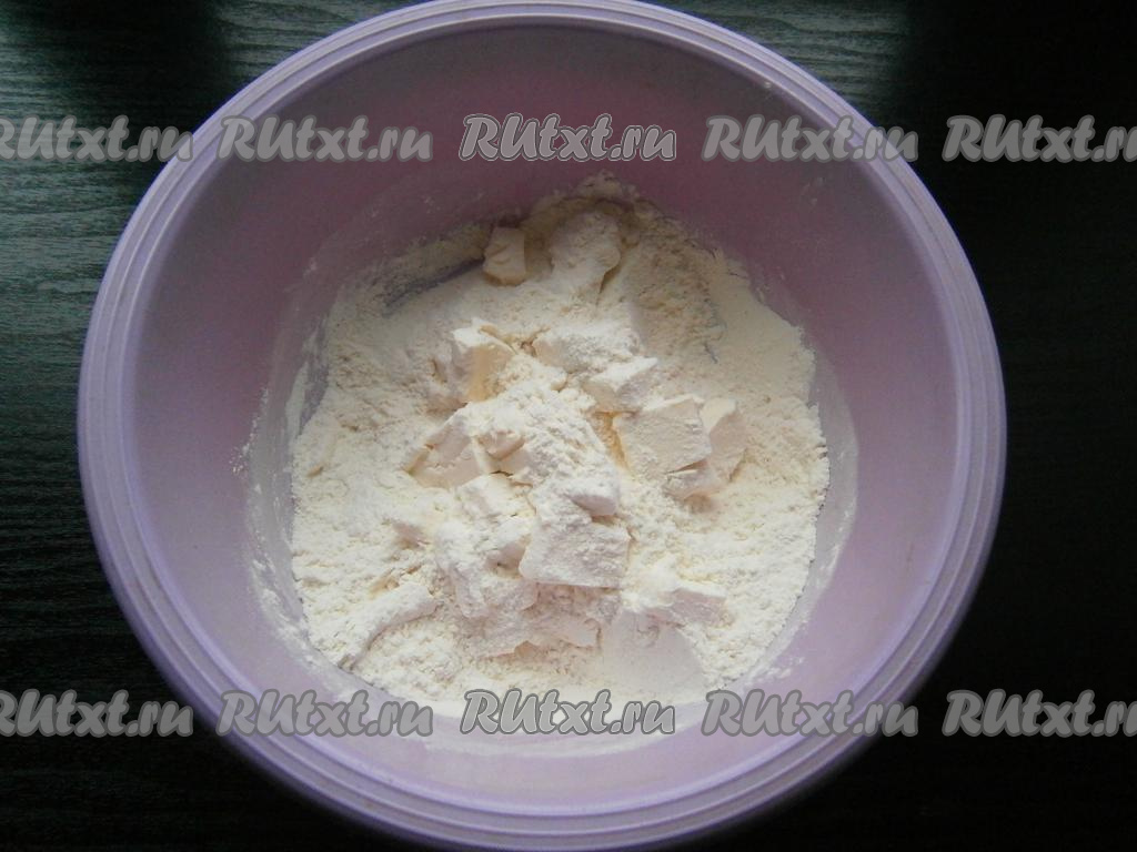 Добавить холодное сливочное масло, нарезанное небольшими кубиками.