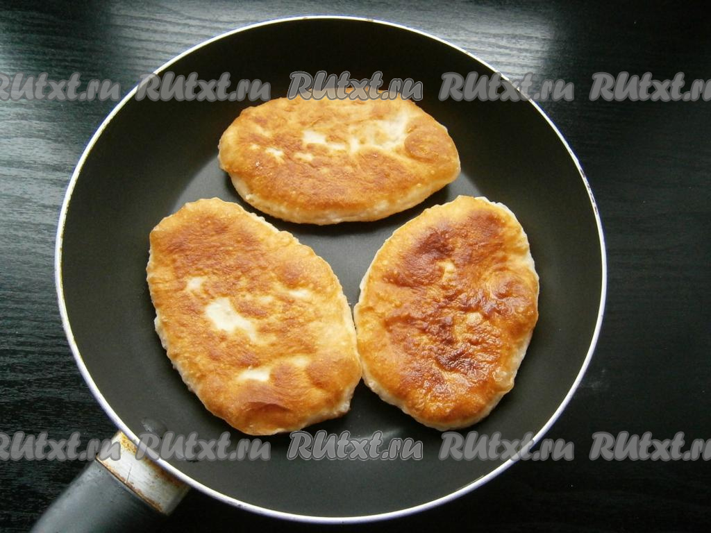 Жарить пирожки на разогретом подсолнечном масле на небольшом огне до румяного цвета с обеих сторон.