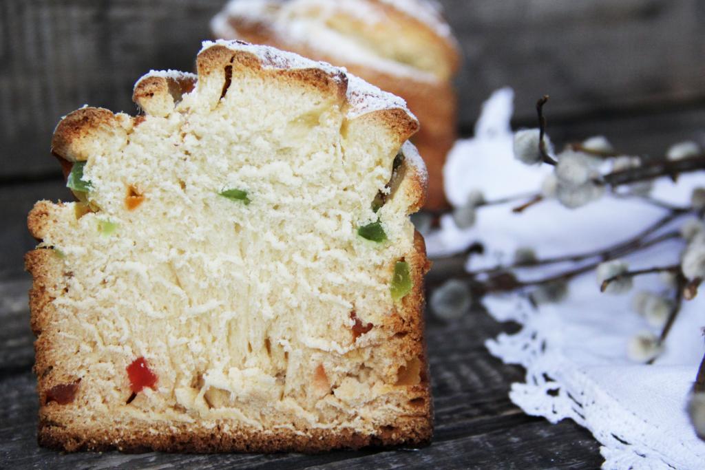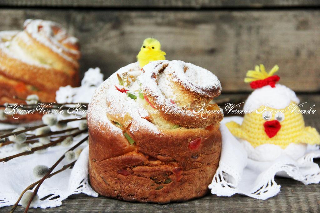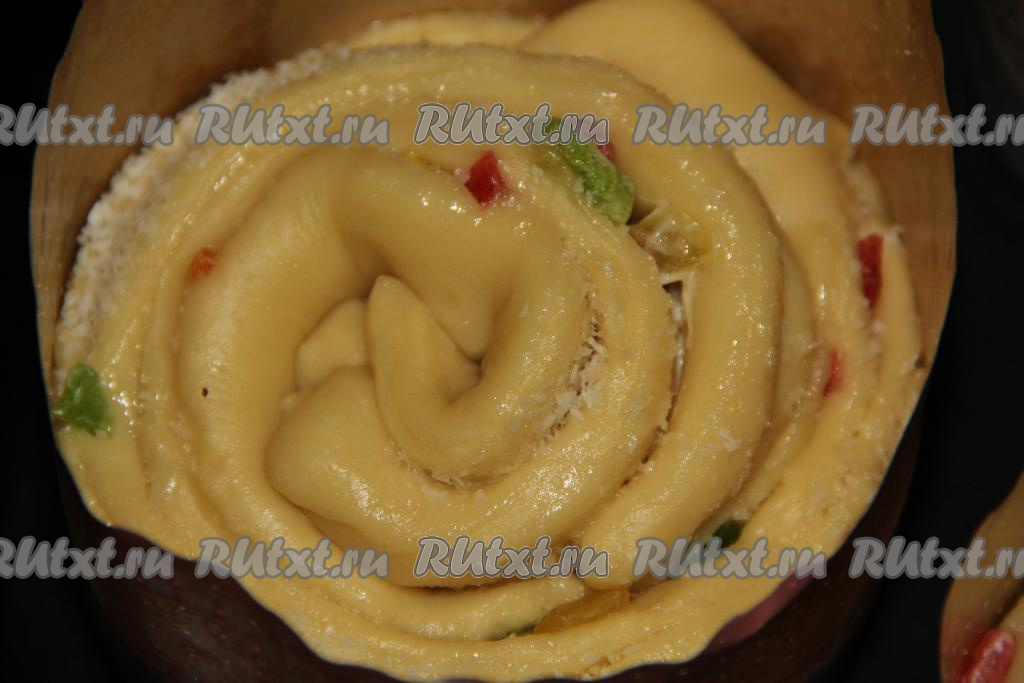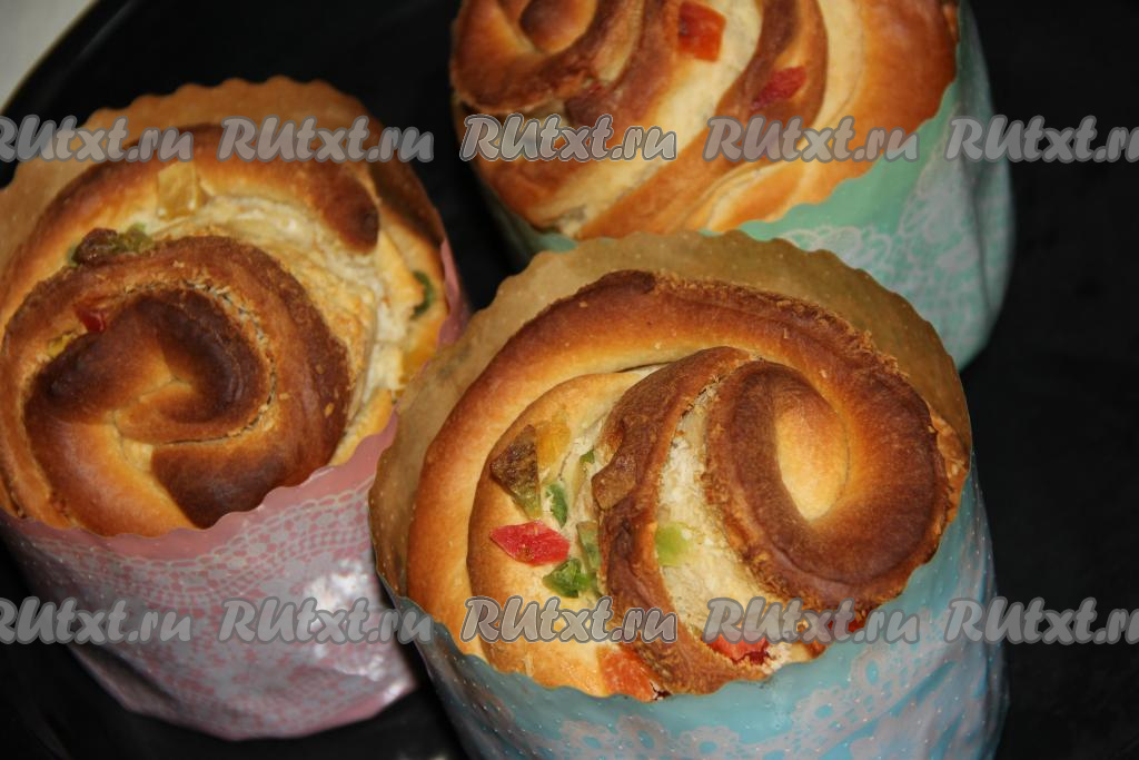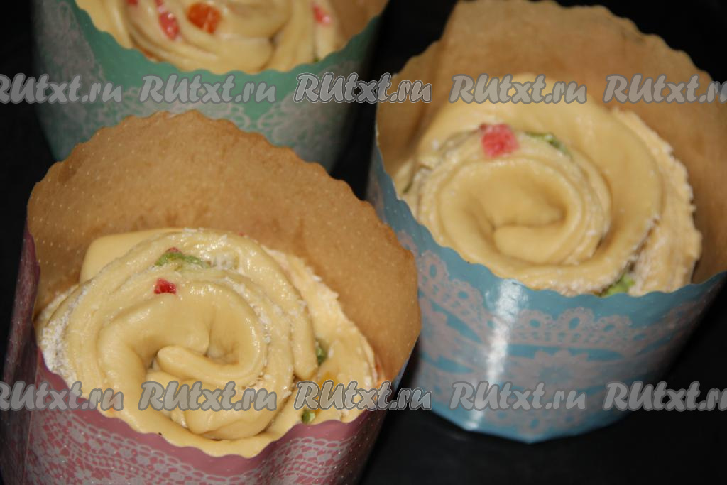 Выпекать куличи в разогретой духовке при температуре 180 градусов, примерно, 45 минут. Готовность проверить сухой лучинкой (при прокалывании готовых краффинов лучинка должна остаться сухой). Готовые куличи хорошо остудить.