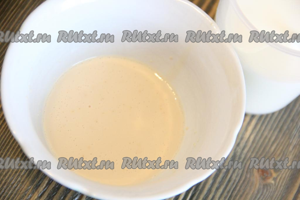 В небольшое количество тёплого молока всыпать дрожжи, перемешать и подождать минут 10-15 (дрожжи "оживут").