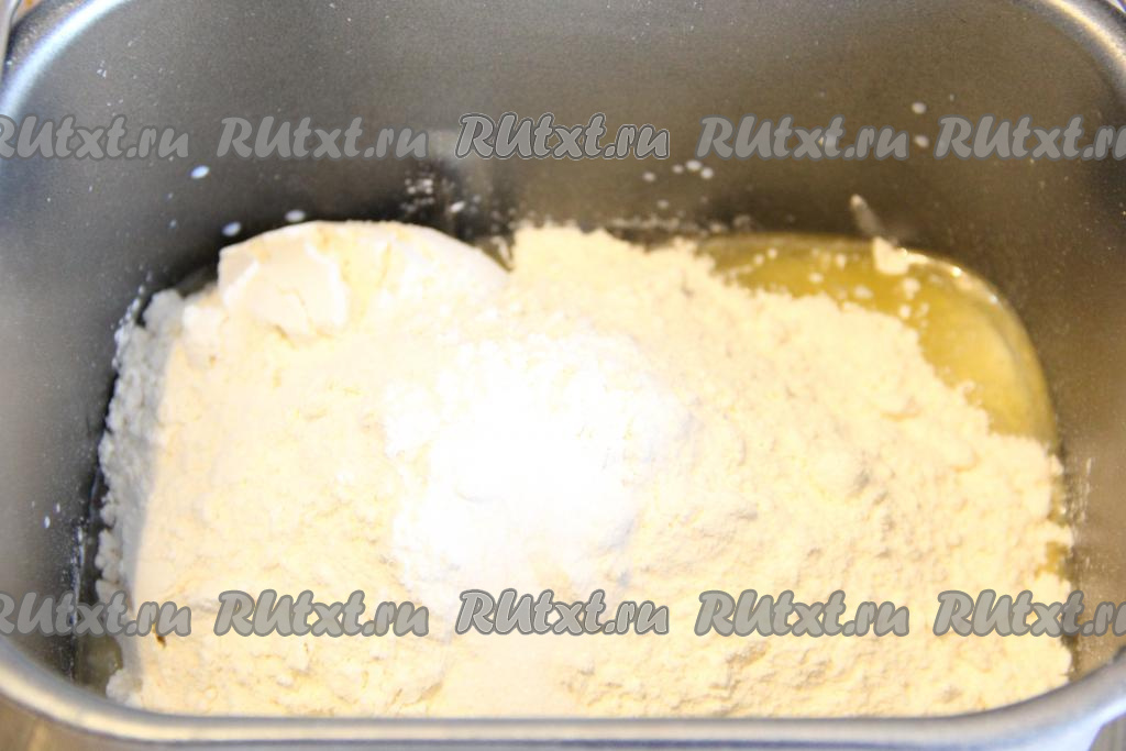 Затем всыпать муку, соль и выставить на хлебопечке режим "Замес теста" (в моей хлебопечке замес теста длится 1,5 часа).
