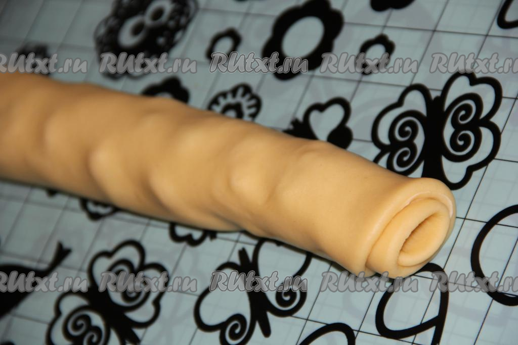 Рулет разрезать на 2 части в длину, не дорезая до конца (как на фото).