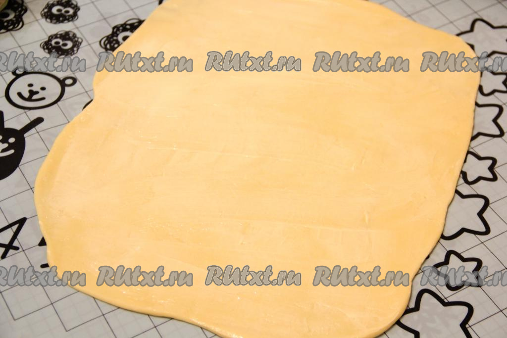 На припыленном мукой столе (или на силиконовом коврике) каждую часть теста раскатать в прямоугольный пласт, смазать мягким сливочным маслом.