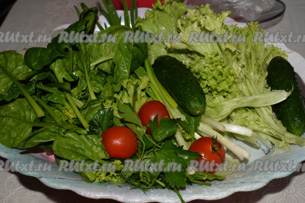 Моем овощи и зелень, удаляем лишнюю влагу бумажными полотенцами.