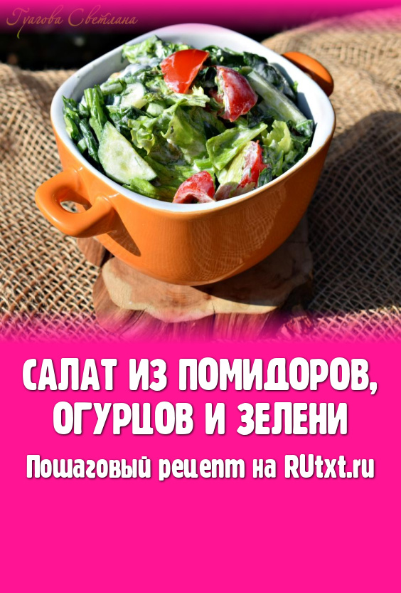 Наш очень вкусный, сочный и полезный салат из помидоров, огурцов и зелени готов! Он станет прекрасным дополнением к любым блюдам. Такой овощной салат с зеленью будет отличным витаминным зарядом для нашего организма, поэтому пользу этого блюда сложно переоценить.