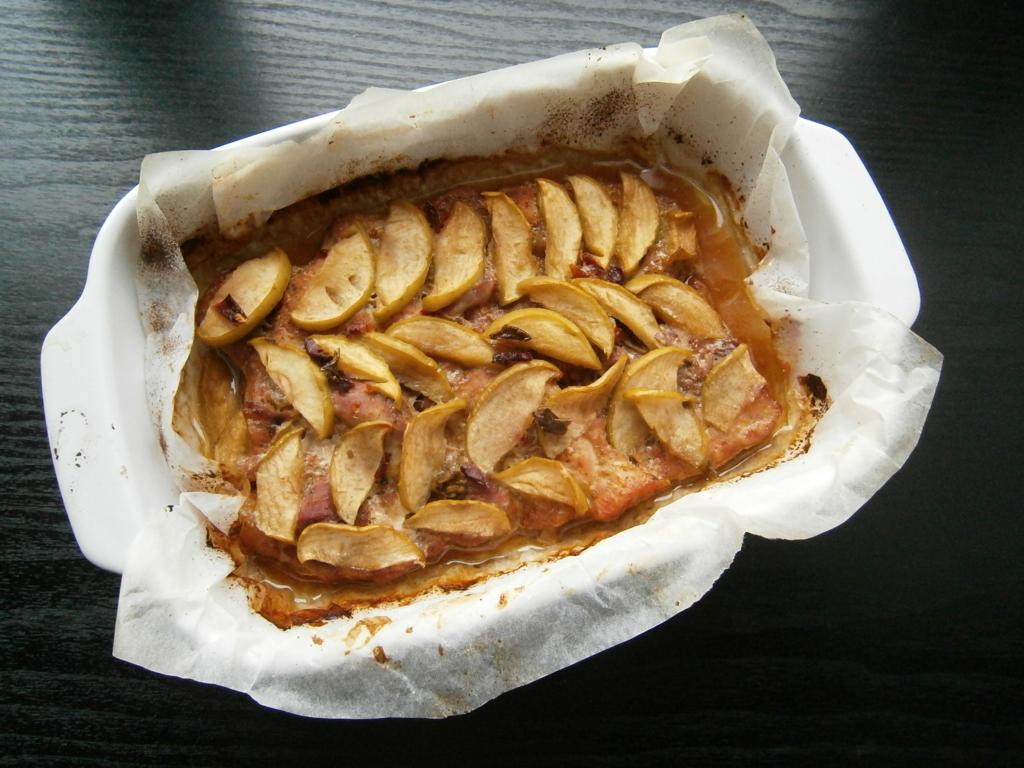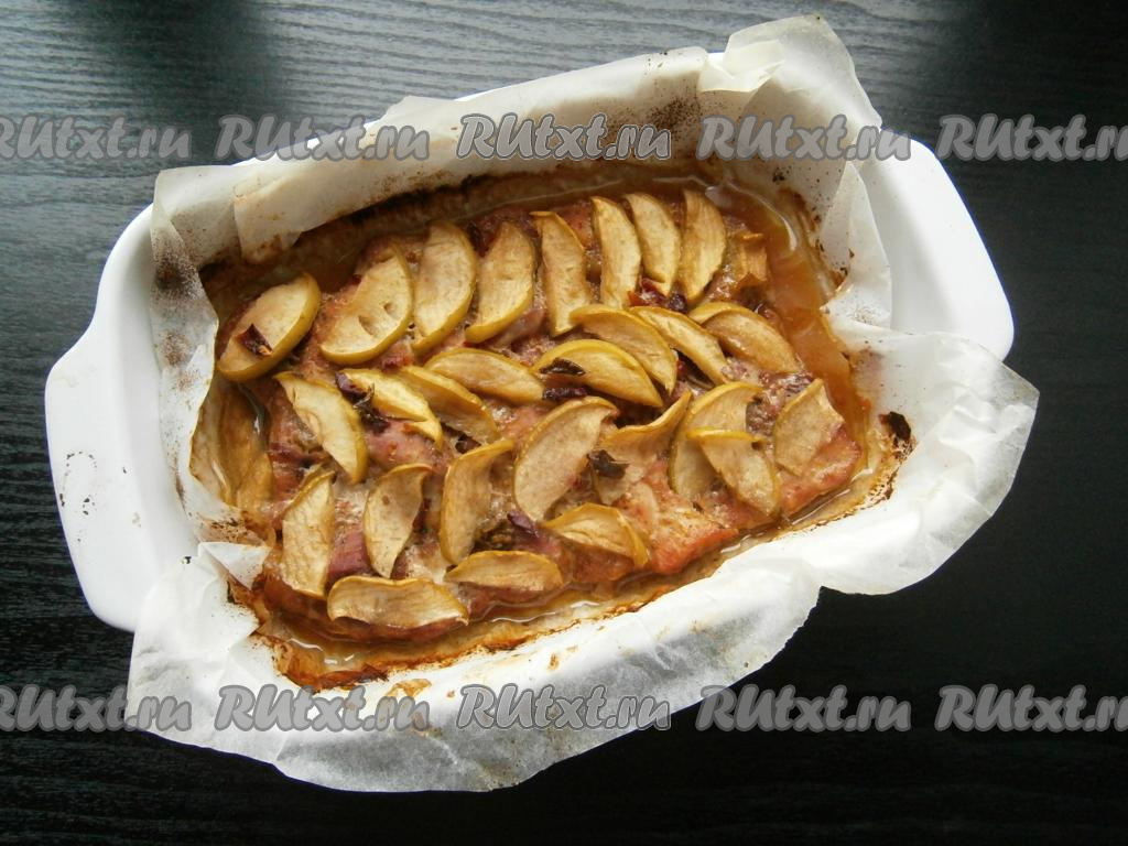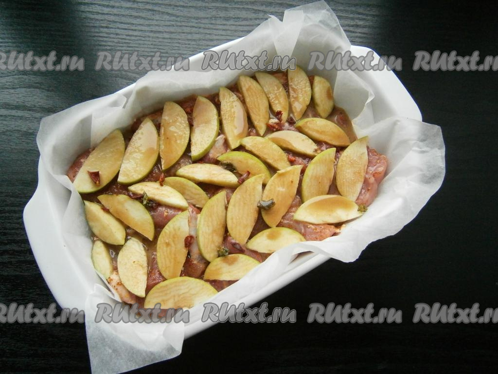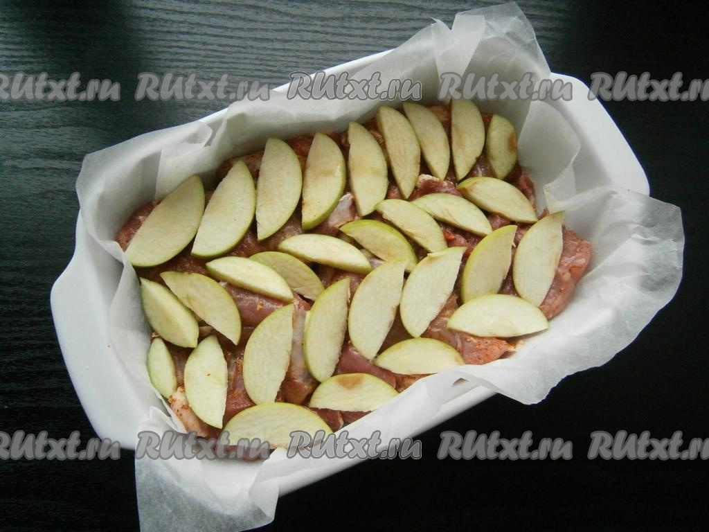 Затем фольгу убрать и запекать свинину с яблоками еще 20-25 минут при той же температуре.
