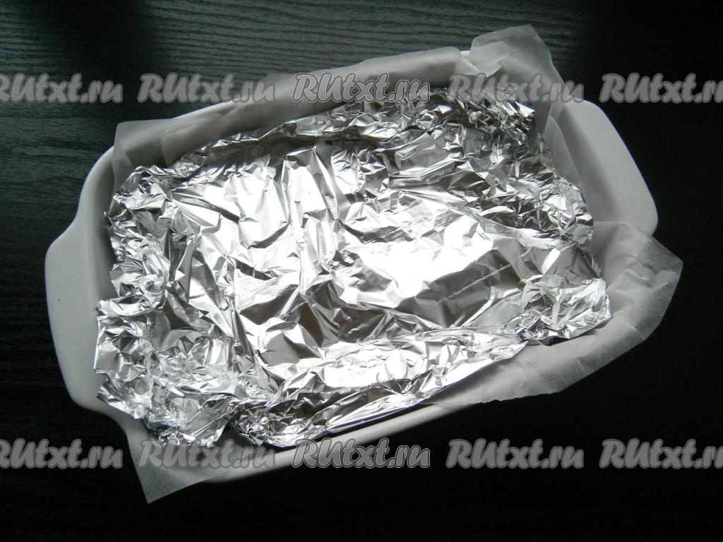Форму, накрыв фольгой, отправить на 35 минут в духовку, разогретую до 180 градусов.