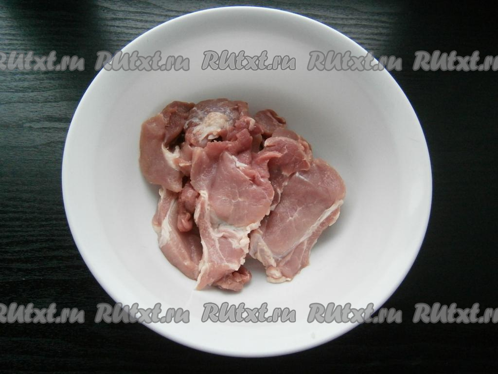Свинину нарезать кусочками, как на отбивные, только меньшего размера.