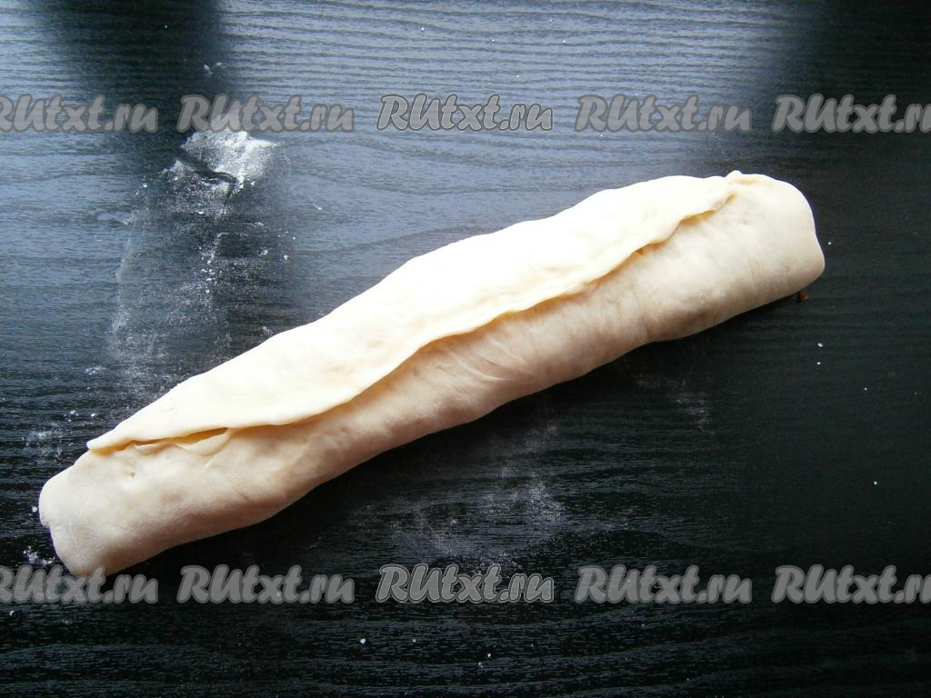 Плотно свернуть тесто в рулет.