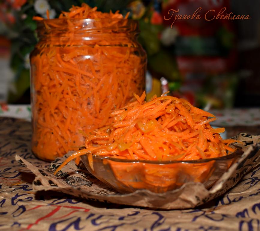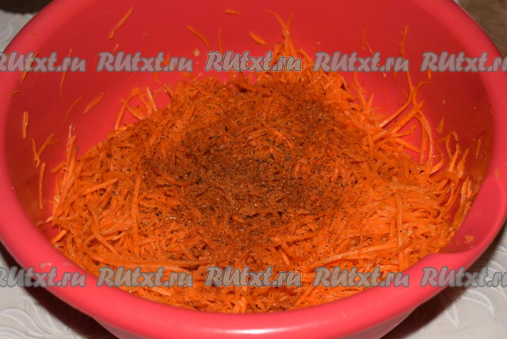 Тщательно перемешать нашу морковку и оставить пропитываться, примерно, на 30 минут. Такую закуску можно подавать к столу сразу после перемешивания с маслом, но, настоявшись и пустив сок, корейская морковка будет намного вкуснее и насыщенней. Вот так просто и достаточно быстро можно сделать в домашних условиях сочную и очень вкусную морковь по-корейски.