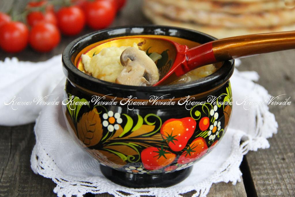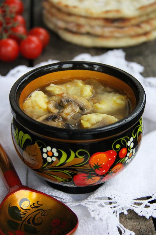 Гречневый суп с грибами и картофельными клецками
