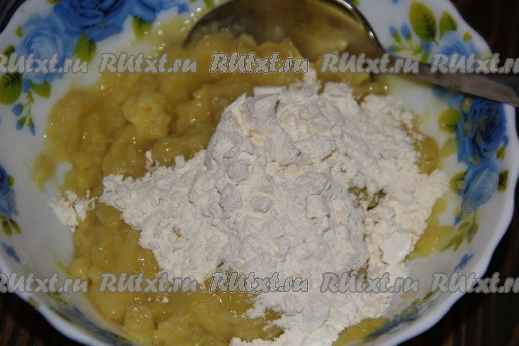 Затем в картофельную массу добавить муку.