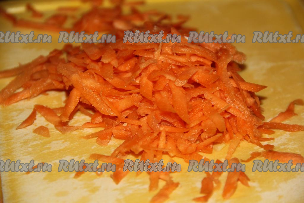 Очищенную морковку натереть на крупной тёрке.