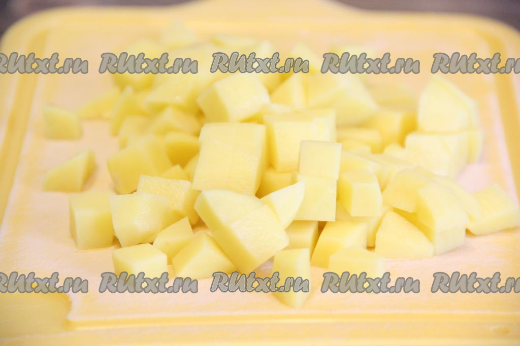 Очищенный картофель нарезать на брусочки или кубики, как вам больше нравится.