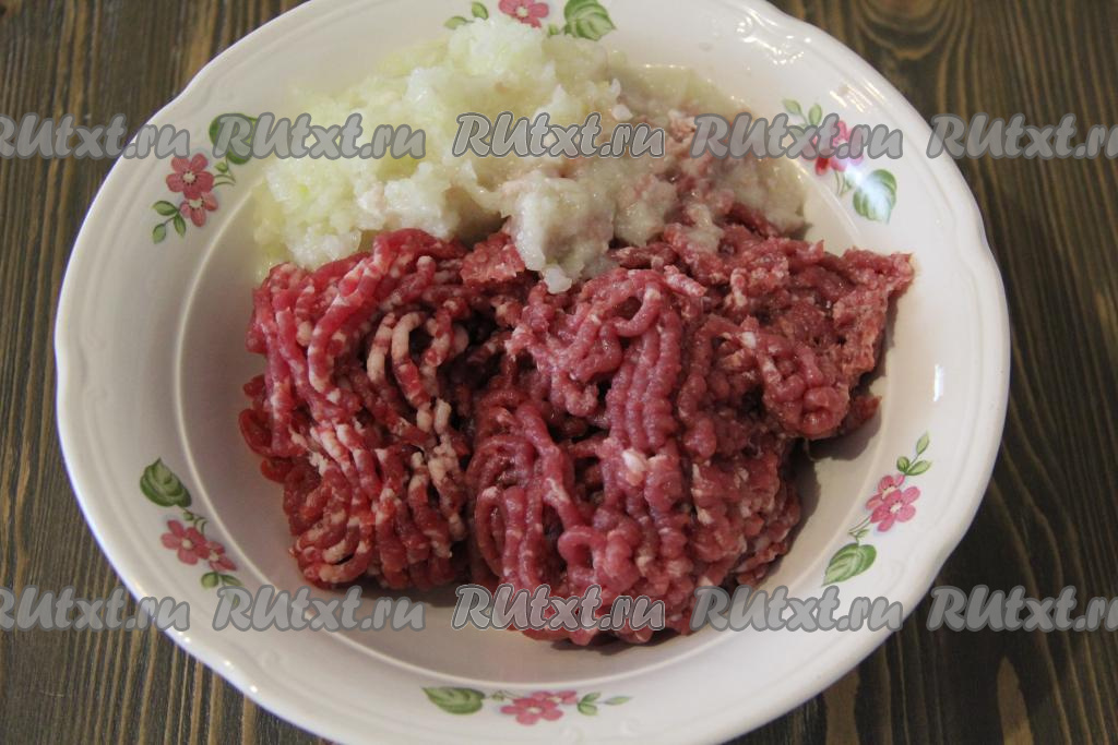 Мясо пропустить через мясорубку вместе с очищенным репчатым луком.