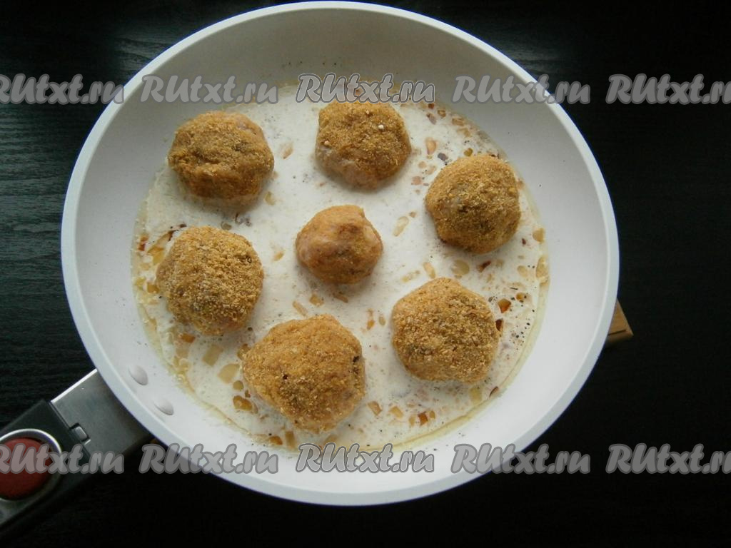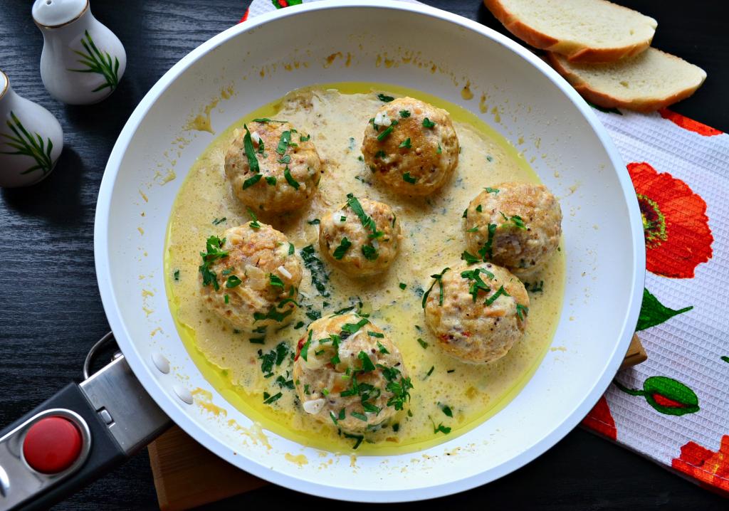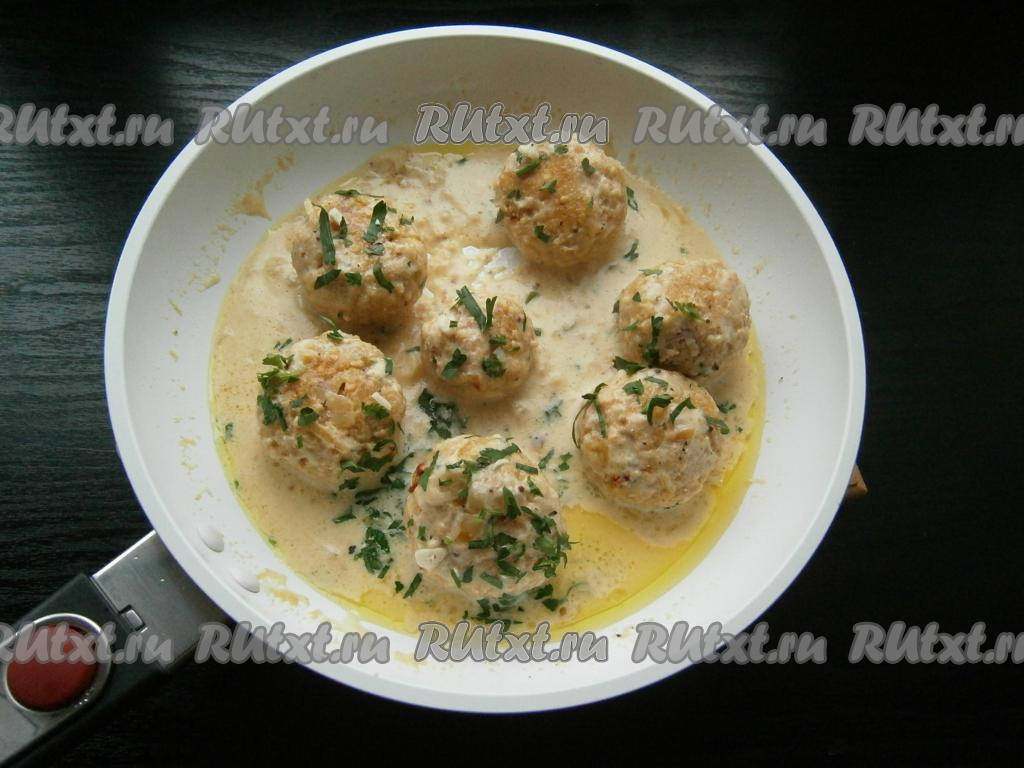 Убрать сковороду с огня, тефтели перемешать с соусом и оставить их под закрытой крышкой еще на 5-7 минут. После этого вкусные, ароматные, нежные тефтели, приготовленные с сыром в сметанном соусе, подать к столу с гарниром.