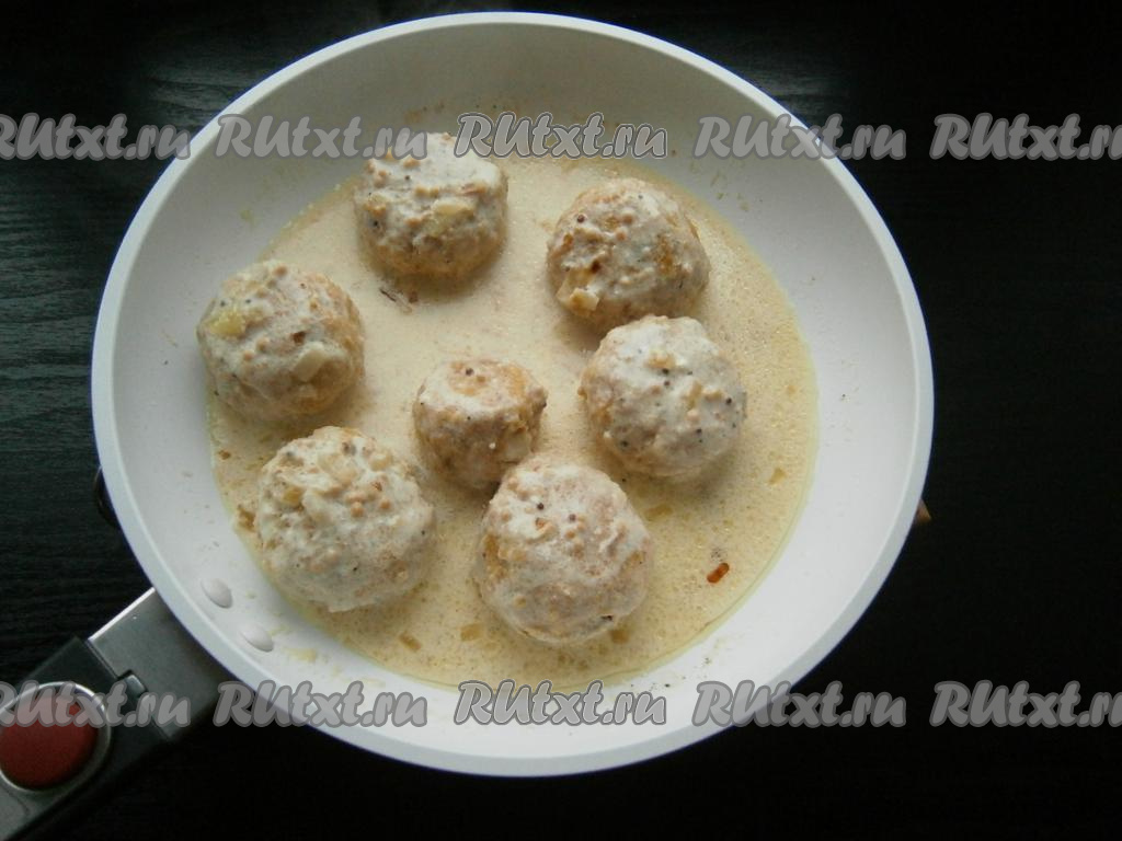 Затем тефтели перевернуть, прикрыть сковороду крышкой и тушить их на слабом огне еще минут 15.