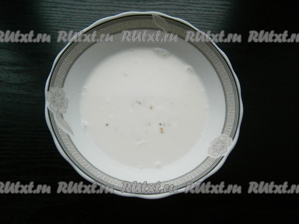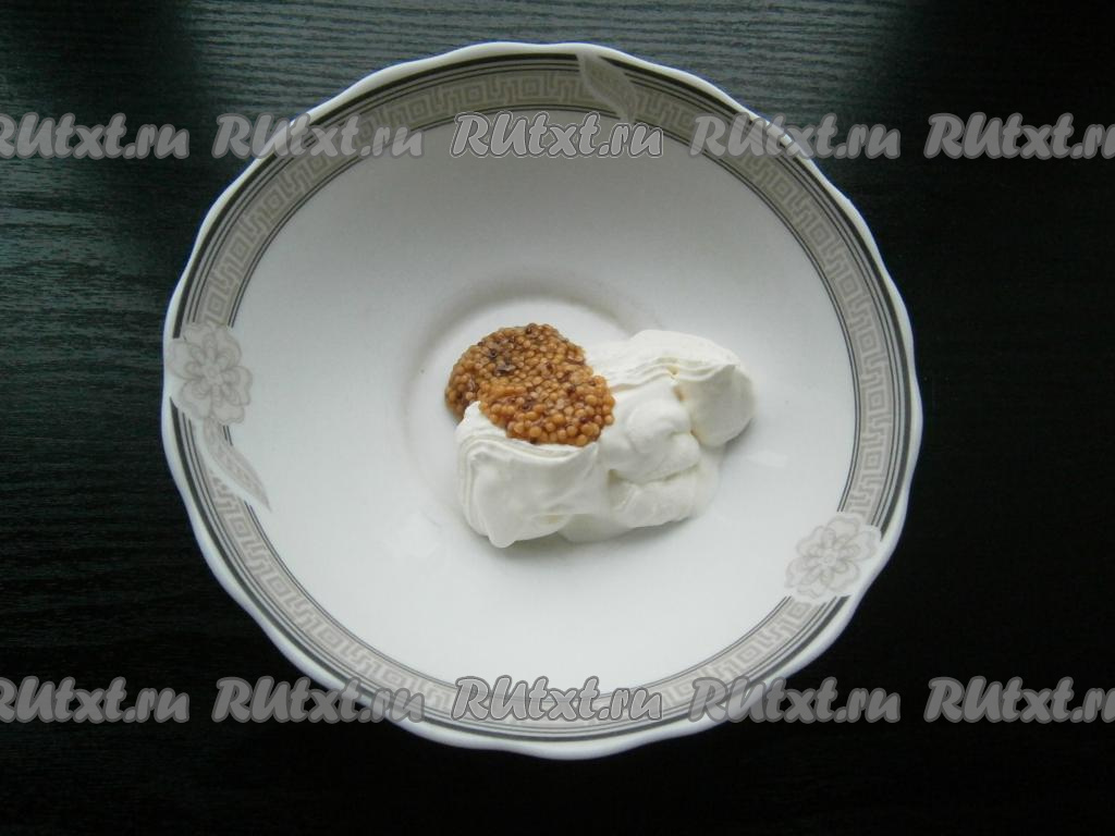 Перемешать сметану с горчицей, влить теплую воду, перемешать соус до однородности.