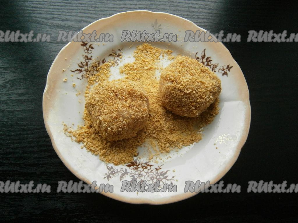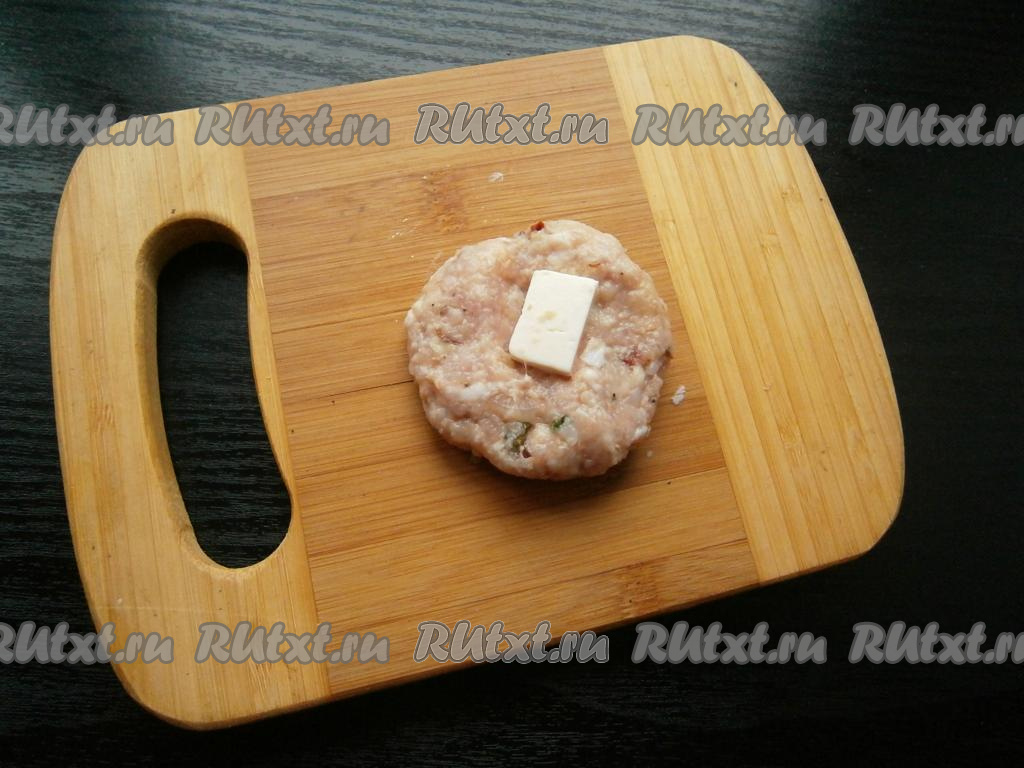 Сформировать из фарша средней величины тефтели, внутрь которых поместить по кусочку плавленого сыра.