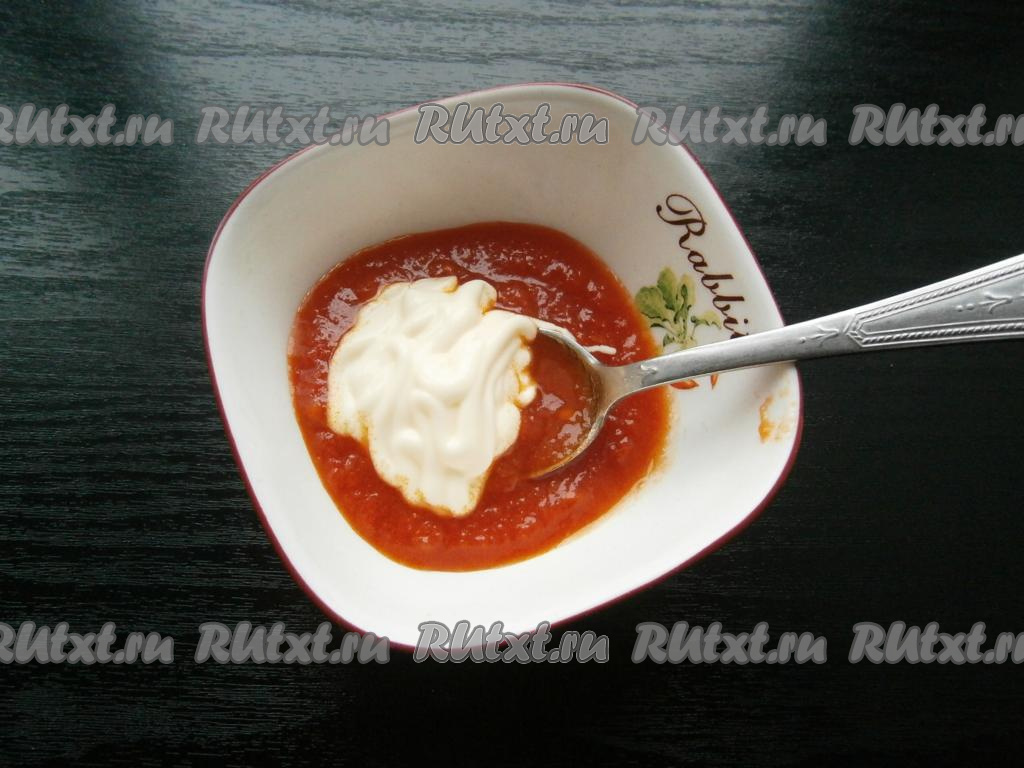 Смешать томатный соус с майонезом (немного майонеза оставить).