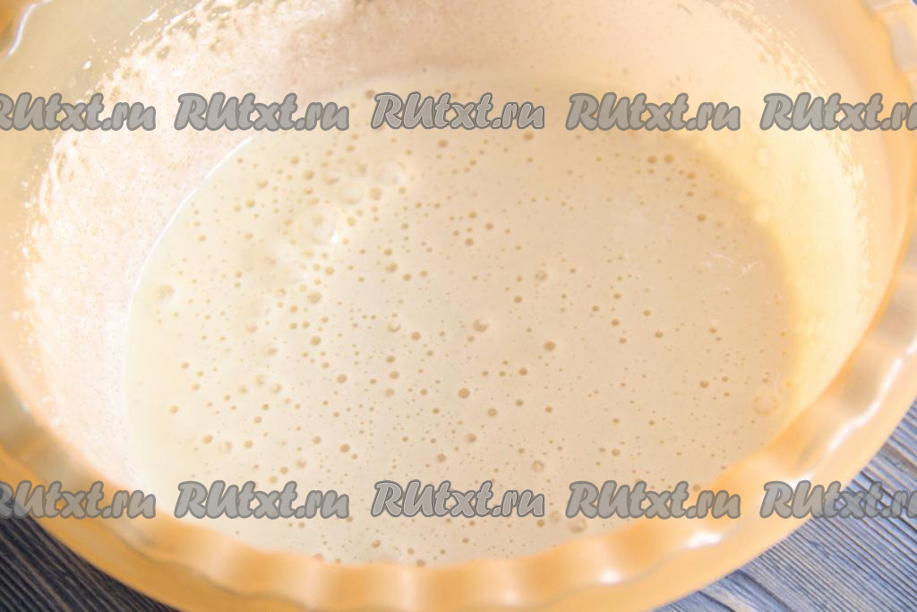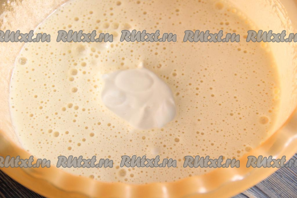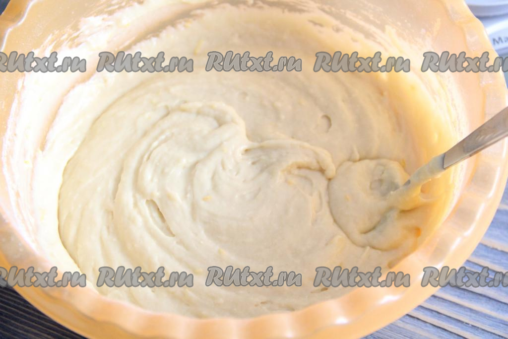 Перемешать тесто лопаткой или ложкой до однородного состояния. Консистенция теста получится воздушной и нежной, средней густоты.