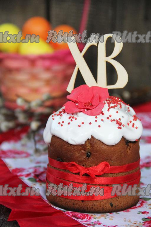 Выпекать бездрожжевые куличи в разогретой духовке при температуре 180 градусов, примерно, 50 минут, но время выпечки может зависеть от вашей духовки. Готовность кулича проверить сухой лучинкой (лучина должна остаться сухой при прокалывании готовой выпечки). Готовые пасхальные куличи хорошо остудить, а затем украсить по желанию. Я украсила белковой глазурью (для приготовления глазури 1 яичный белок слегка взбить, затем добавить 2 столовые ложки сахарной пудры, взбивать до стойких пиков, в конце взбивания добавить пару капель лимонного сока).