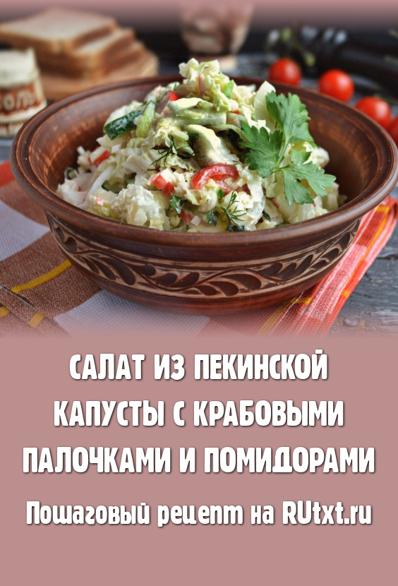 Предлагаю вам попробовать отличный салат, приготовленный из пекинской капусты с крабовыми палочками и помидорами. Салат получается очень легким, хрустящим, нежным и безумно вкусным! Его можно подать на обед или ужин в качестве дополнения к основным блюдам. Крабовые палочки придают салату интересную и необычную нотку. Попробуйте, очень вкусно!