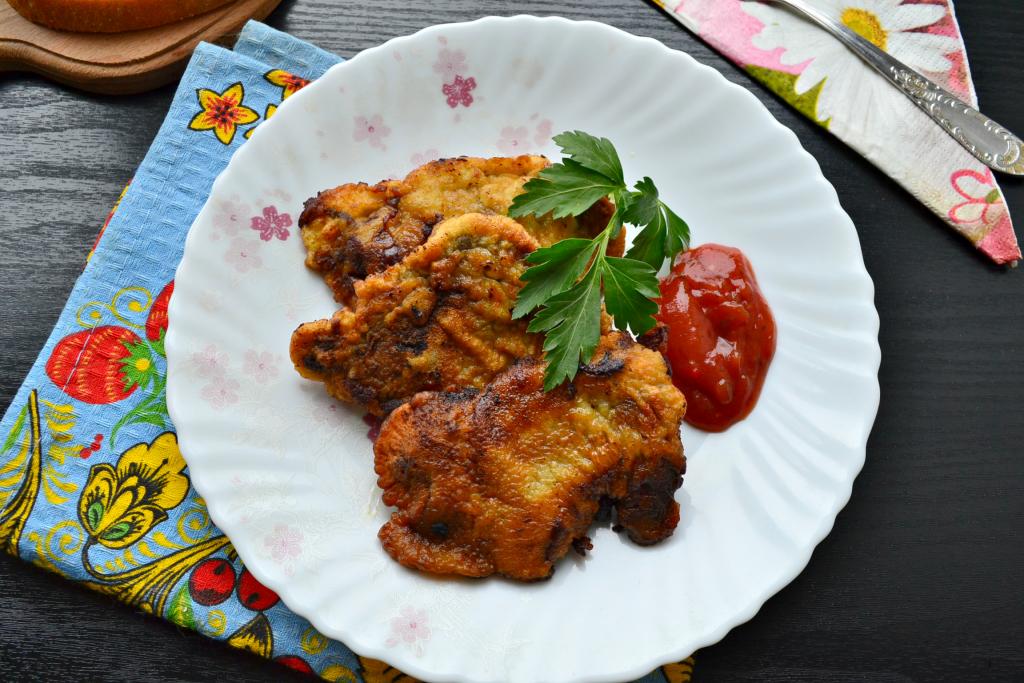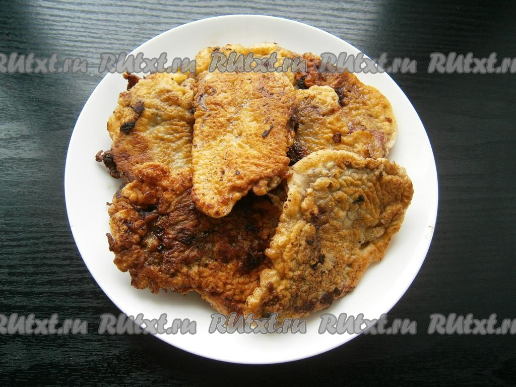 Подать вкуснейшую отбивную печень, приготовленную в кляре, к столу.