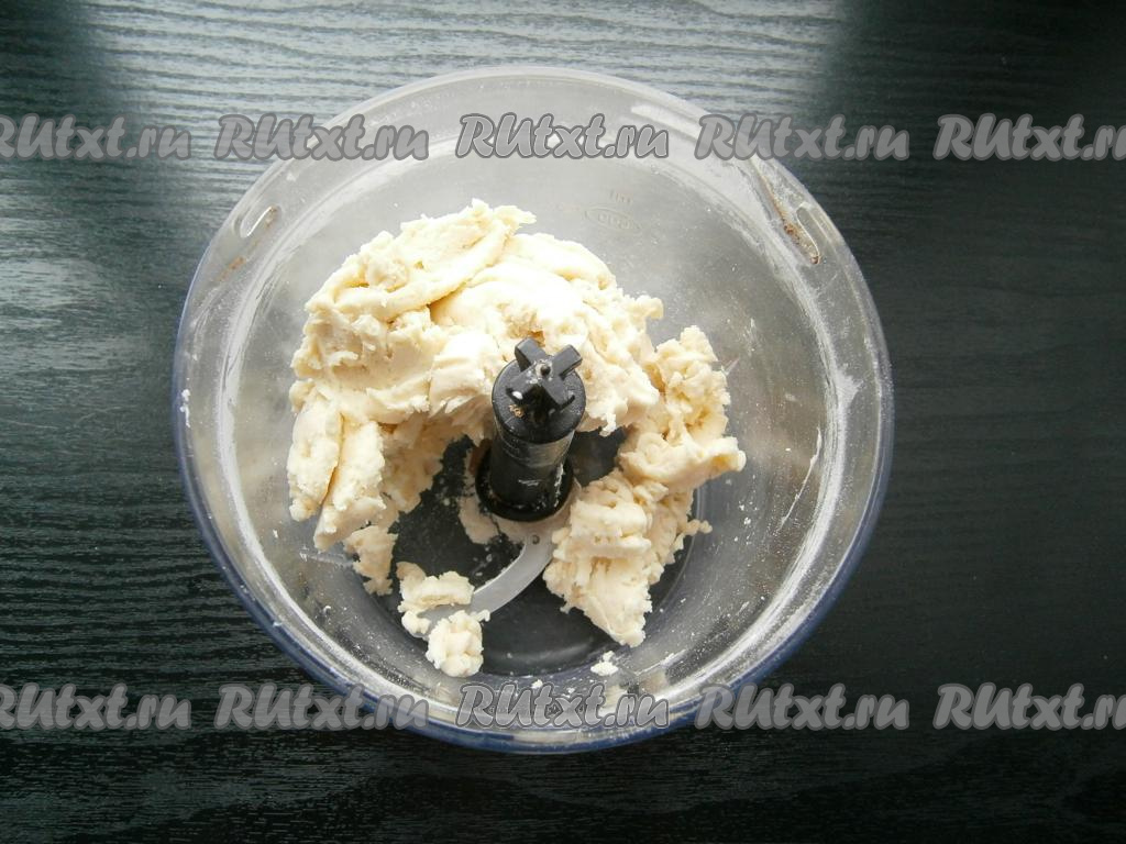 Влить ледяную воду и включить блендер, пока не замесится тесто.