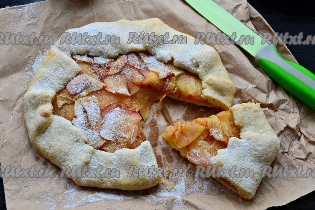 Выпекать галету с яблоками в разогретой до 180 градусов духовке 20-25 минут. Дать немного остыть и посыпать сахарной пудрой.