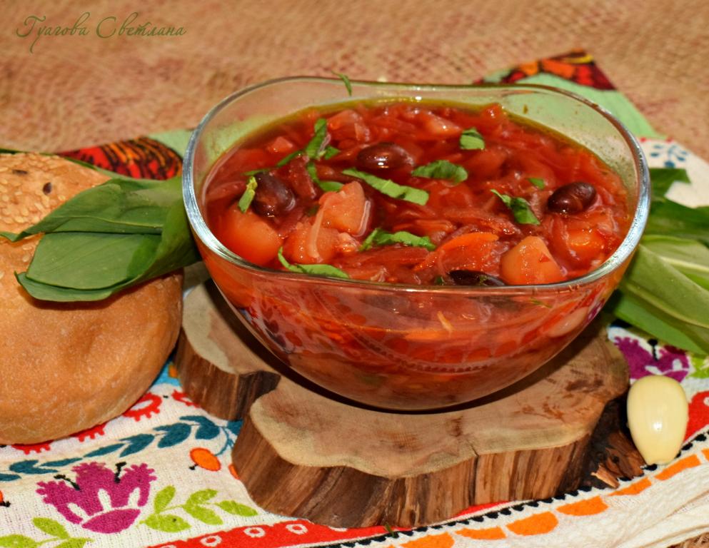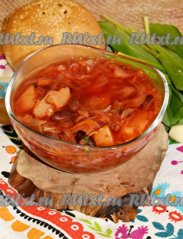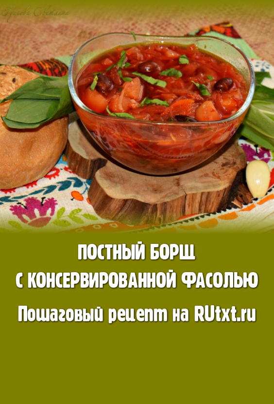Постный борщ с консервированной фасолью - это очень вкусный и сытный вариант любимого первого блюда. Такой борщ готовлю не только в дни Поста, а просто для разнообразия рациона. Фасоль делает борщ более питательным и сытным, а обилие овощей - полезным и очень вкусным. Приготовьте такой борщ и вся семья будет сыта и довольна!