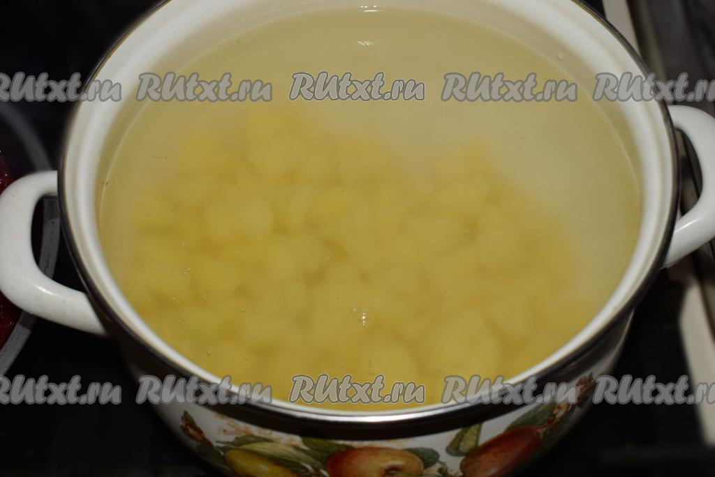 Добавим картофель в кипящую воду. Варим картошку до готовности, примерно, 15 минут, подсолив по вкусу.