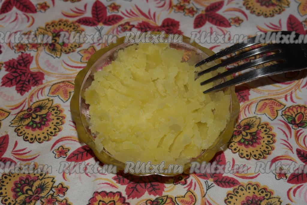 Когда картофель полностью сварится, достаем из бульона несколько долек картофеля и вилкой разминаем его до состояния пюре.